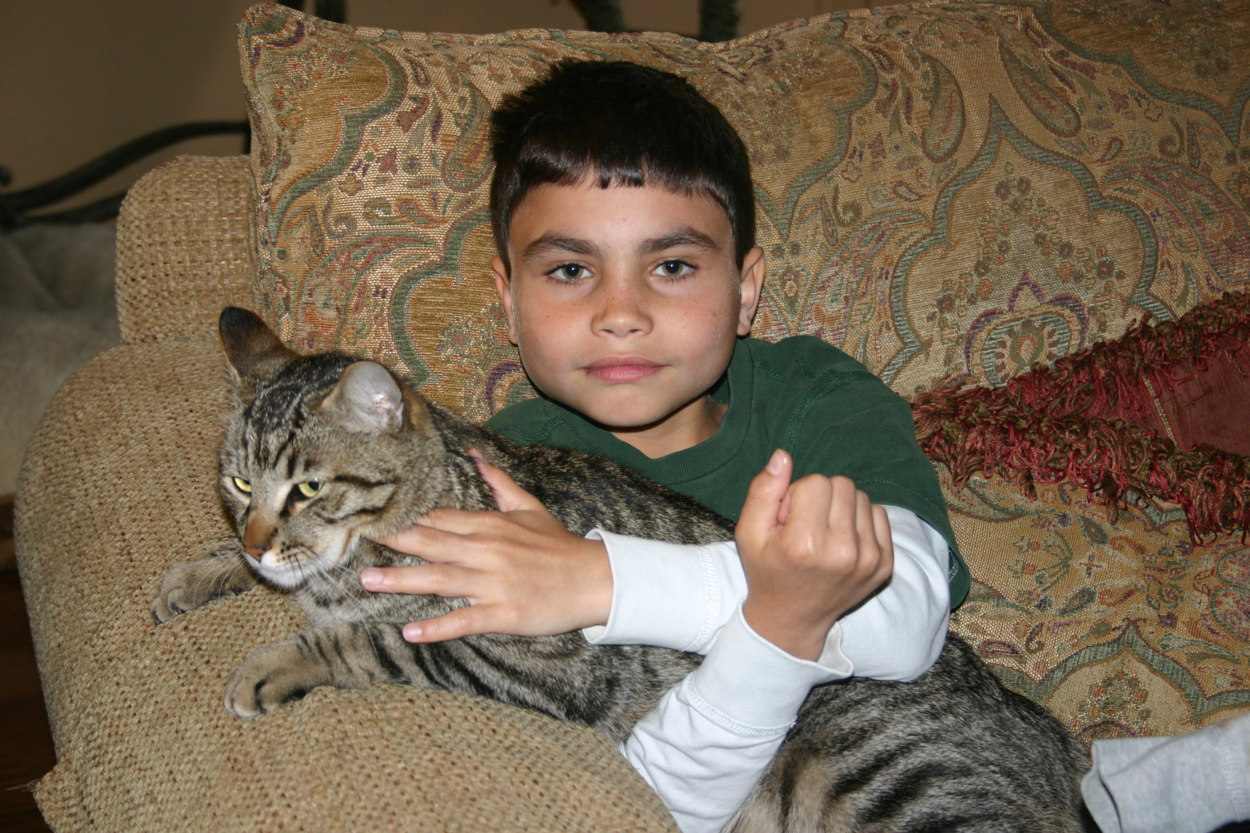 Jonathan loved cats! It all started with Brittany, a female cat that he found in the woods behind our house, to Mittens, a tiny cat that was abandoned by the side of the highway which we adopted.